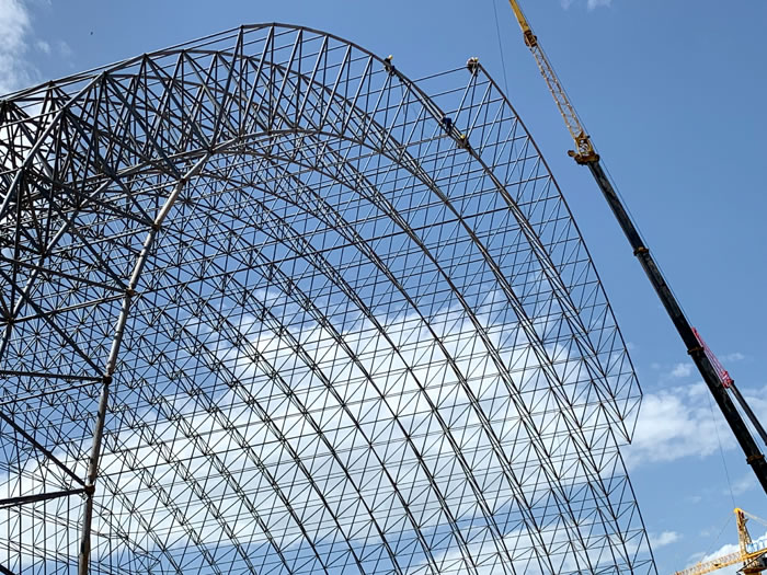 (2)网架加工前应对现场尺寸进行复测,确认无误后方可进行加工、安装;网架制作、运输、安装应遵守《空间网格结构技术规程》JGJ7-2010、《钢网架德兴螺栓球节点》JG/T 10-2009、《钢网架德兴螺栓球节点用高强度螺栓》 GB/T 16939-2016、《德兴钢结构德兴工程德兴施工规范》 GB50755-2012、《德兴钢结构德兴工程德兴施工质量验收标准》 GB50205-2020。